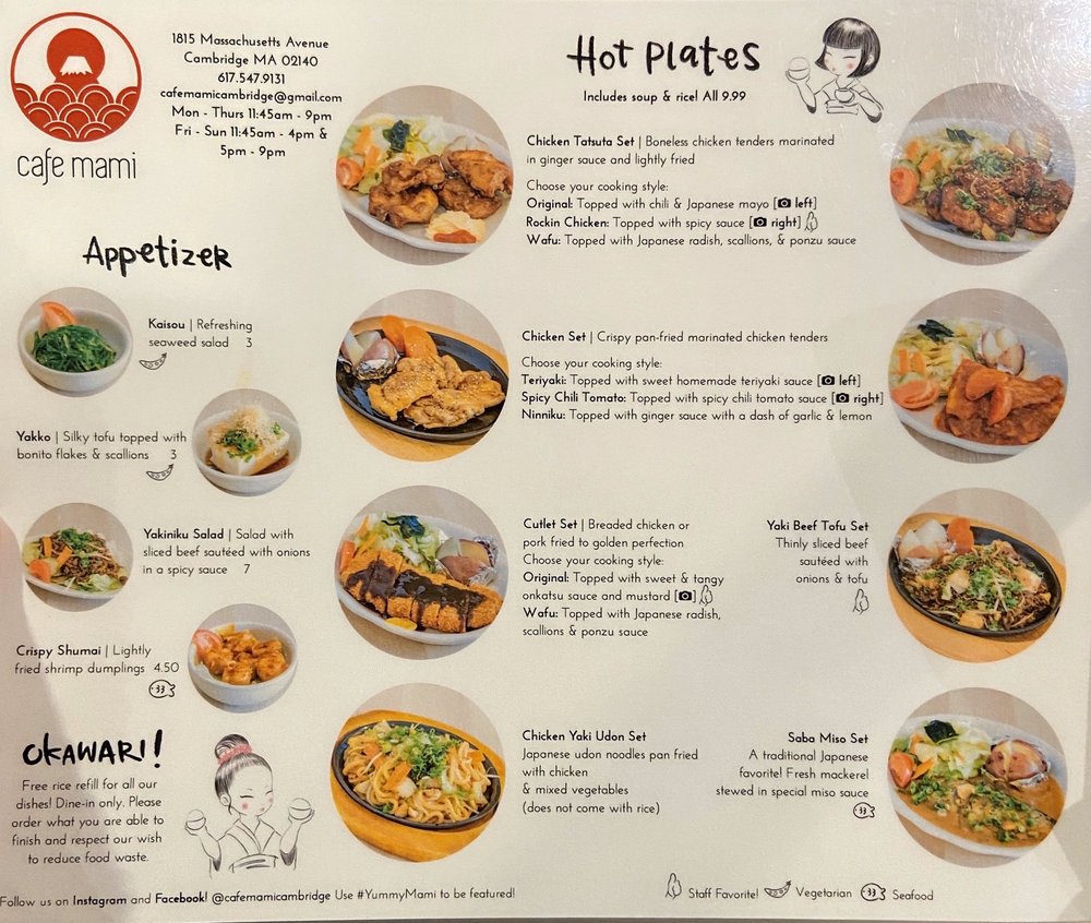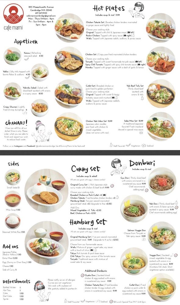 Introducing the menu at Cafe Mami, nestled in the bustling Porter Exchange food court, offers a delightful exploration of Japanese comfort food. The cozy ambiance evokes a sense of home, making it a perfect spot for lunch or dinner. Customers rave about the rockin chicken and crispy shumai, both expertly prepared to satisfy hunger with hearty flavors. The yaki beef tofu set is particularly noteworthy, featuring tender beef that practically melts in your mouth.